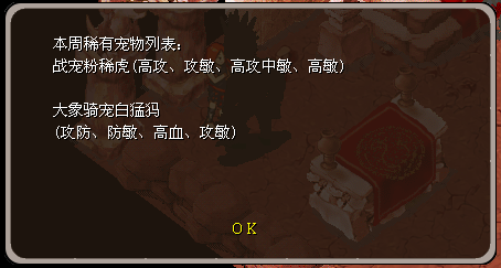 3、渔村(59.109)新手刷骑宠NPC处,挑战新手BOSS,击败后可以获得一张兑奖券其中有几率兑换处白猛犸。